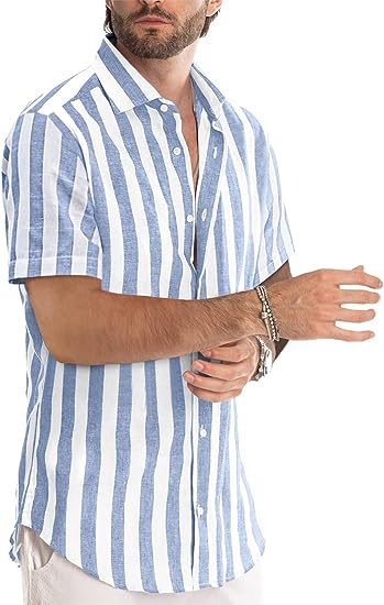 • Design: Stylish casual short sleeve stripes button down shirt. This wardrobe-essential shirt features an easy, flattering fit. Perfect gifts for your boyfriend, son, husband, and yourself.