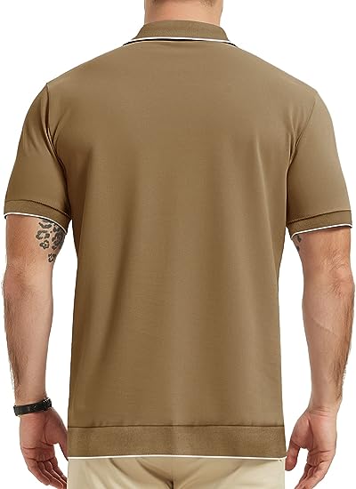 • Men's Knit Polo Shirt:The fabric of this knit polo shirt is soft and stretchy,breathable but not see-through,and the combination of cotton and polyester makes the polo shirt more skin-friendly and wrinkle-resistant.All of these make these polo shirts your go to choice in casual shirts.