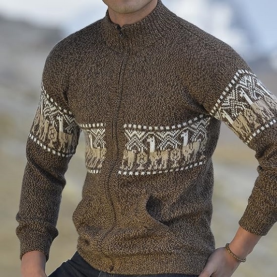 • MENS ALPACA SWEATER: Very versatile, functional and comfortable clothing line. Elegant llama sweater design in brown color.